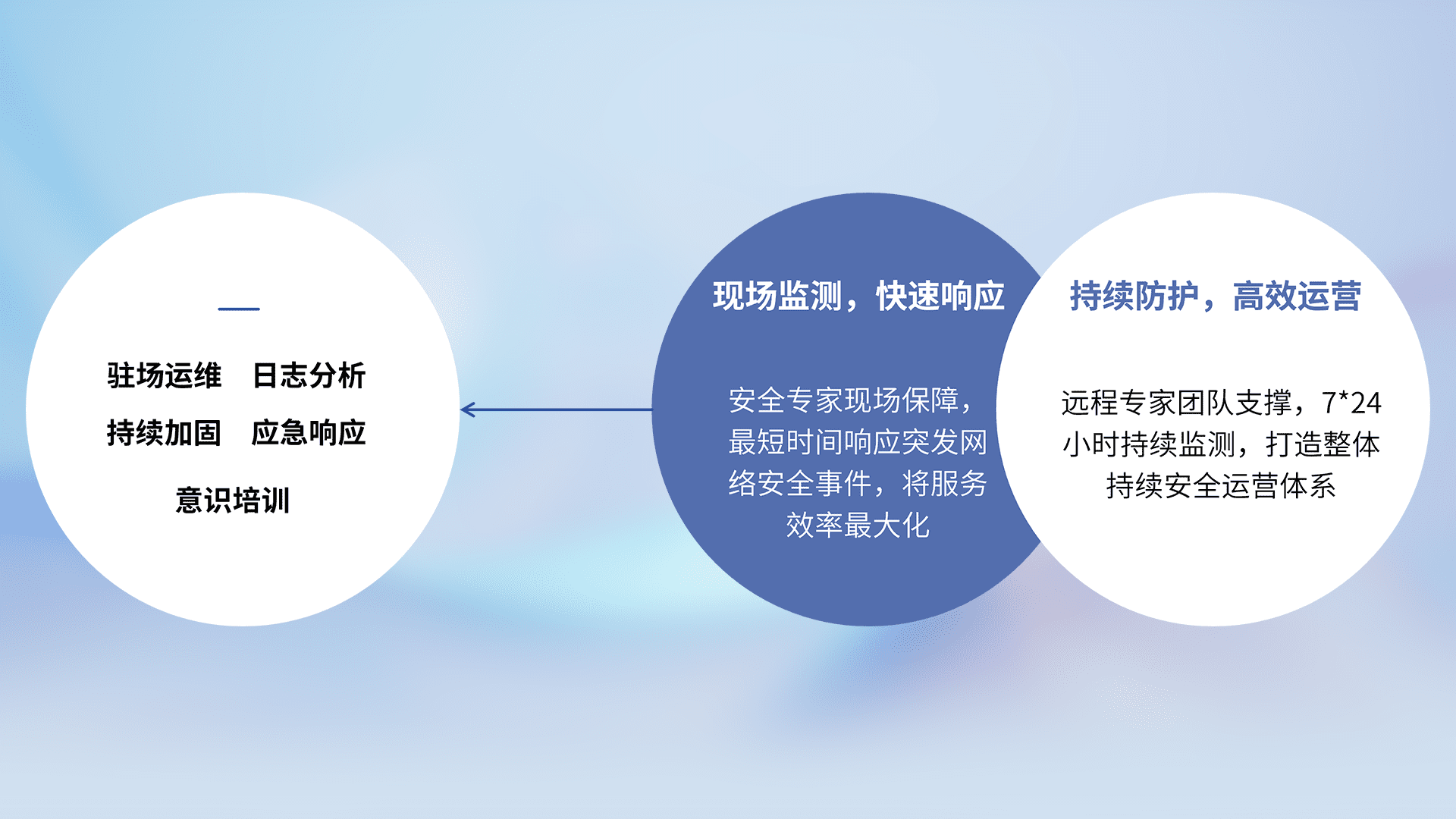 针对客户行业特性,,提供专属的一站式安全管理服务,,,,帮助客户全面感知网络空间威胁,,通过安全专家的线上、、、线下防护支持,,,,实现风险闭环,,,,将安全保障常态化,,,为客户打造常态化安全运维运营服务。。。。